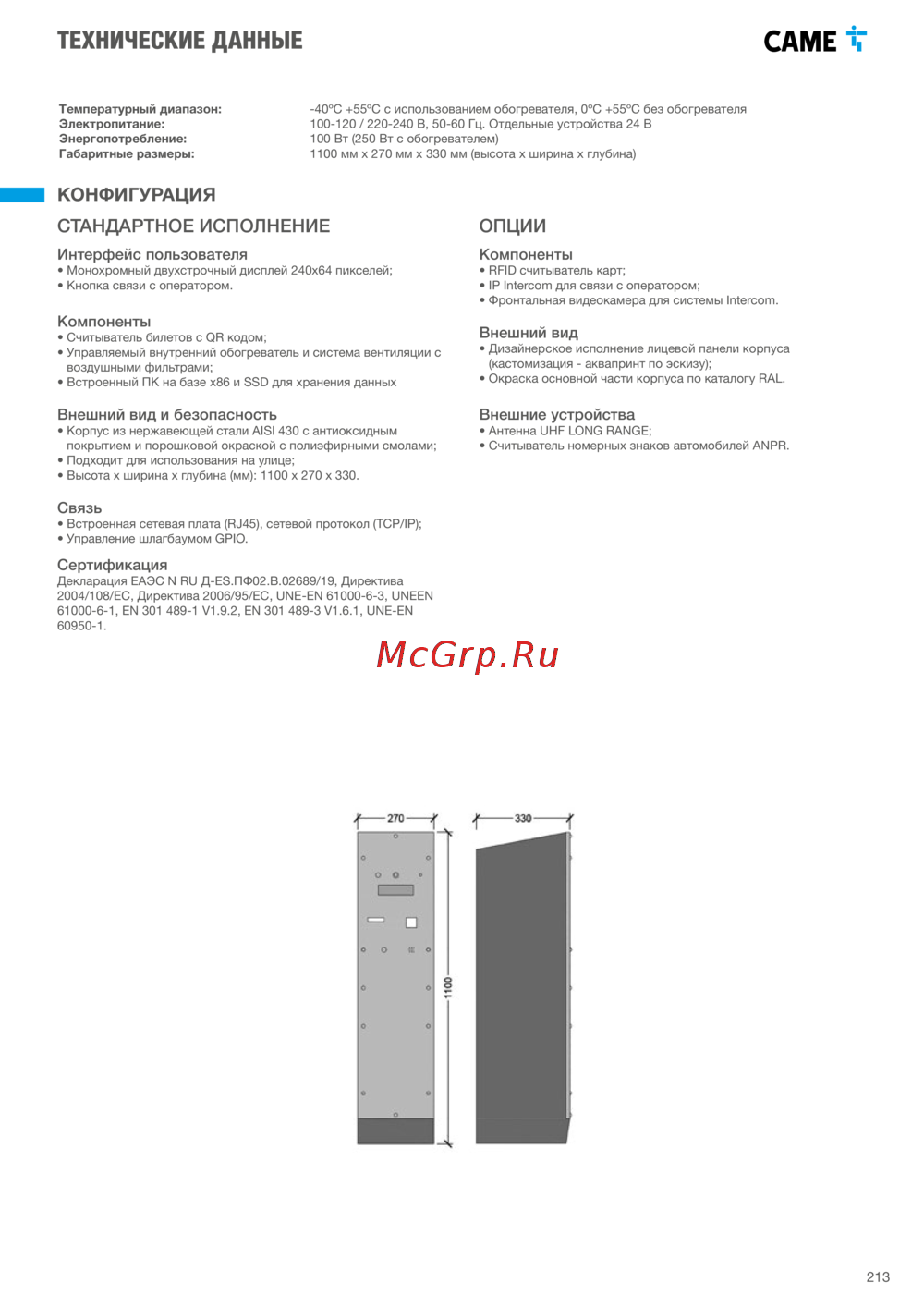 Came G12000K — технические характеристики устройства для считывания билетов [214/362]