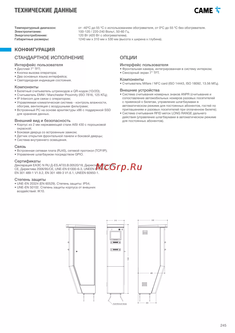 Came G12000K — терминал для контроля доступа с климатической системой и интерфейсом [246/362]