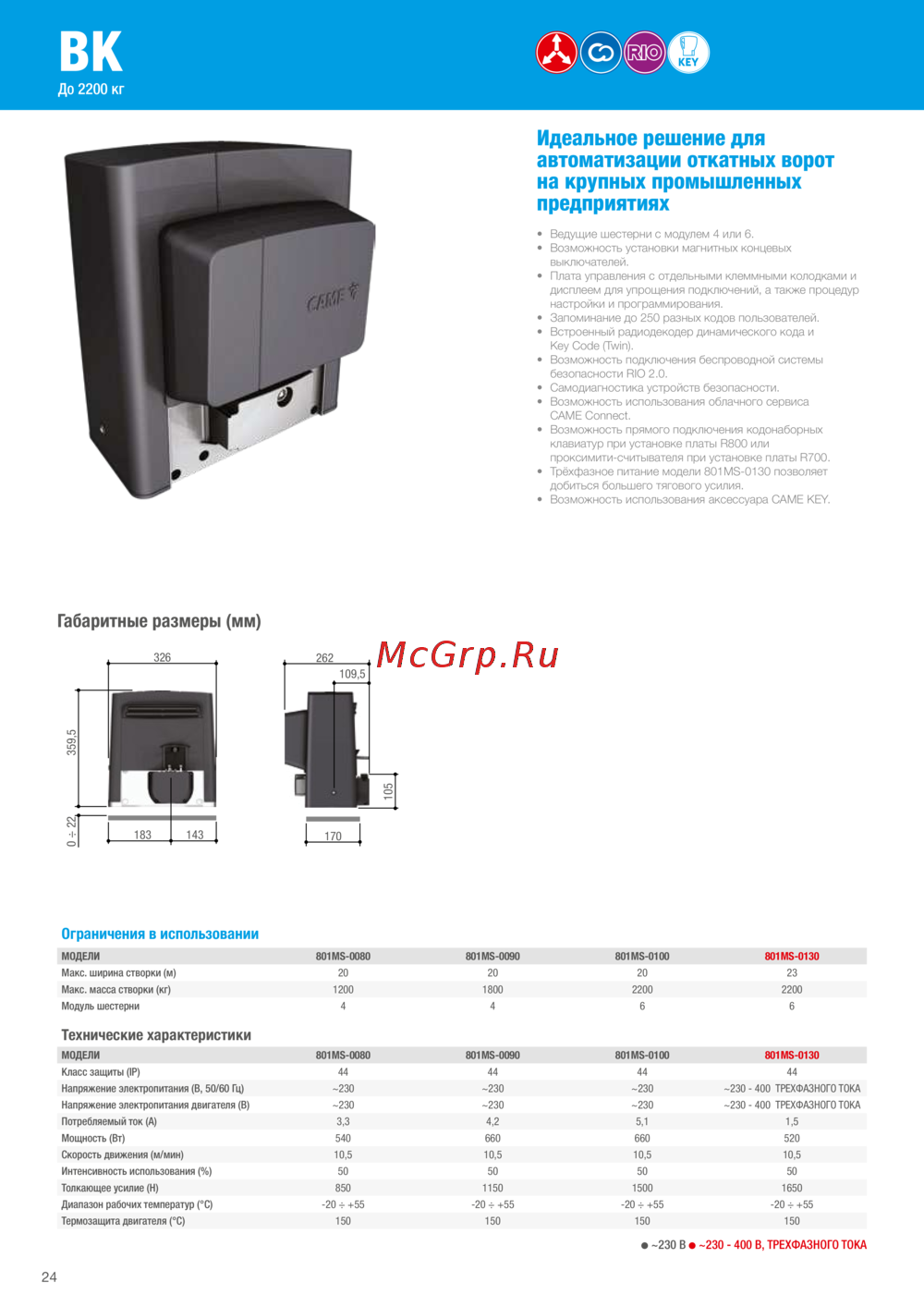 Came G12000K — автоматизация откатных ворот для промышленных предприятий [25/362]