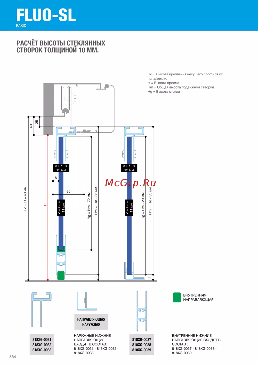 Hg = Высота стекла