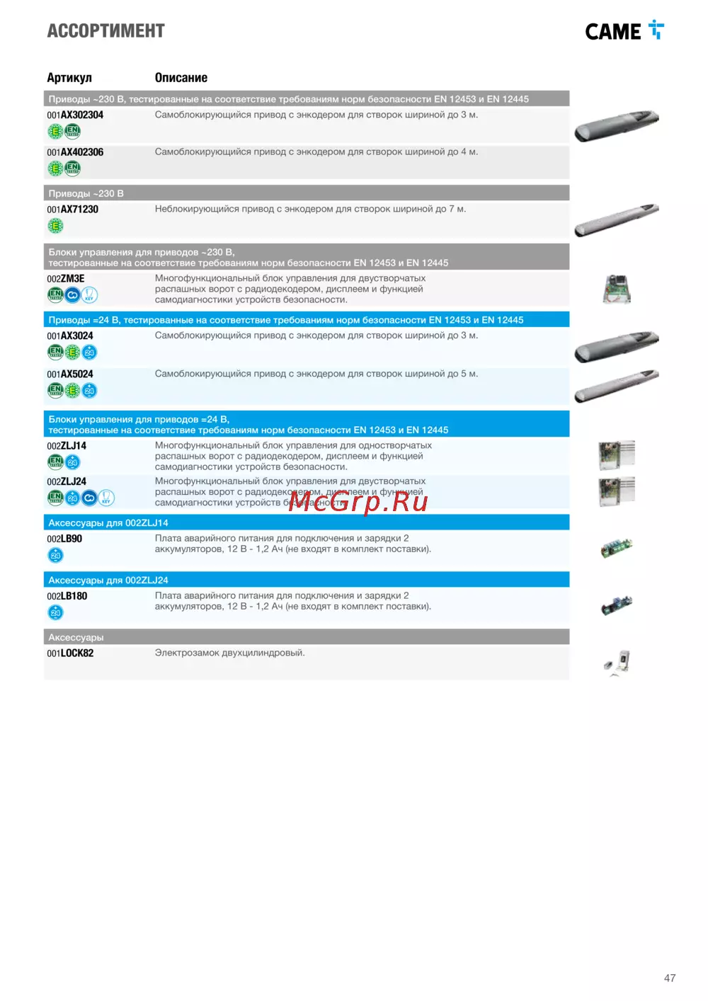 ![Came G4000DX CLASSICO [48/362] Ассортимент](/views2/1777132/page48/bg30.png)