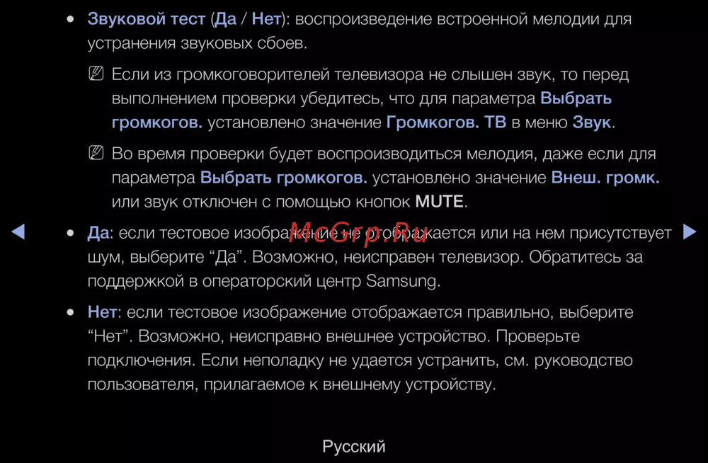 шум, выберите “Да”. Возможно, неисправен телевизор. Обратитесь за
