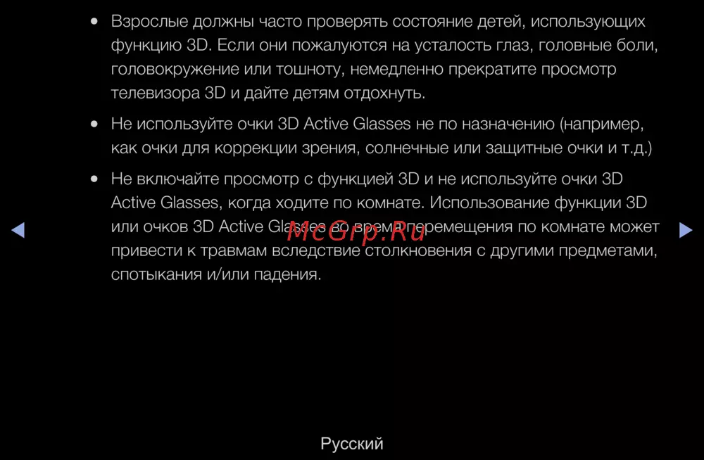 - Выключайте 3d очки когда они не используются p.267