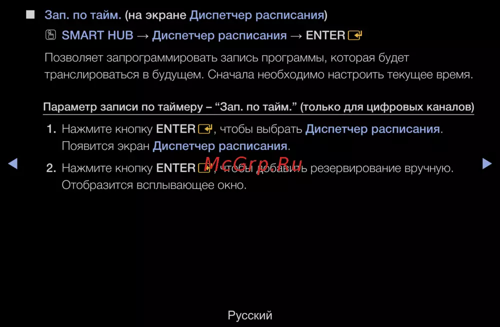 Параметр записи по таймеру – “Зап. по тайм.” (только для цифровых каналов)