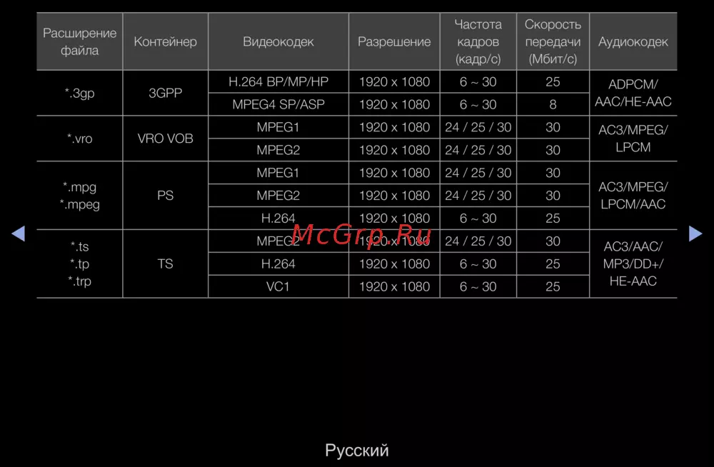 MPEG4 SP/ASP 1920 x 1080 6 ~ 30 8