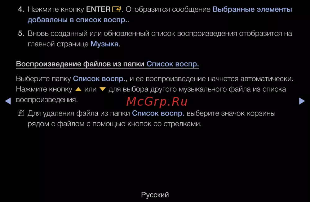 Samsung UE40D5500RW — как создать и управлять списком воспроизведения музыки [249/298]