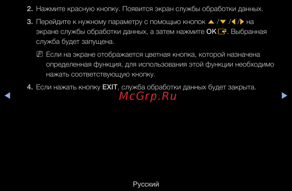 2. Нажмите красную кнопку. Появится экран службы обработки данных.