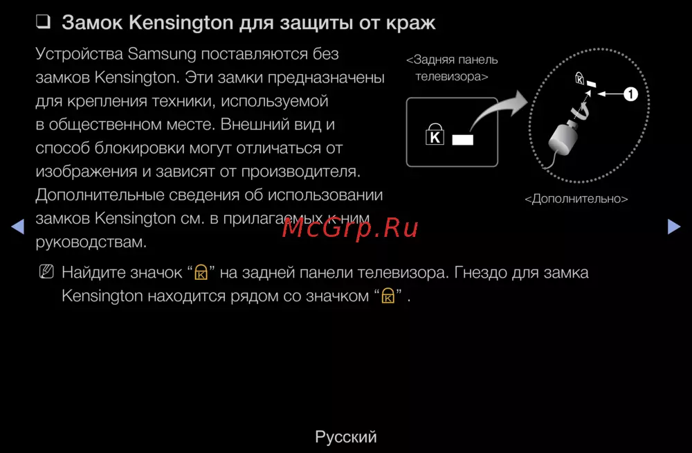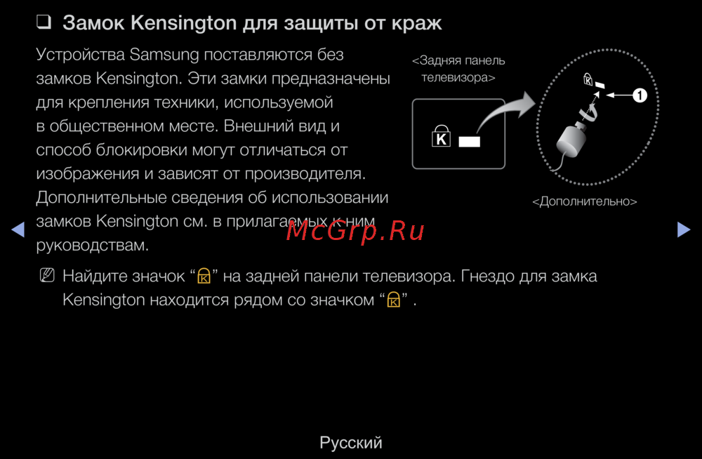 Samsung UE40D5500RW [286/298] Замок kensington для защиты от краж