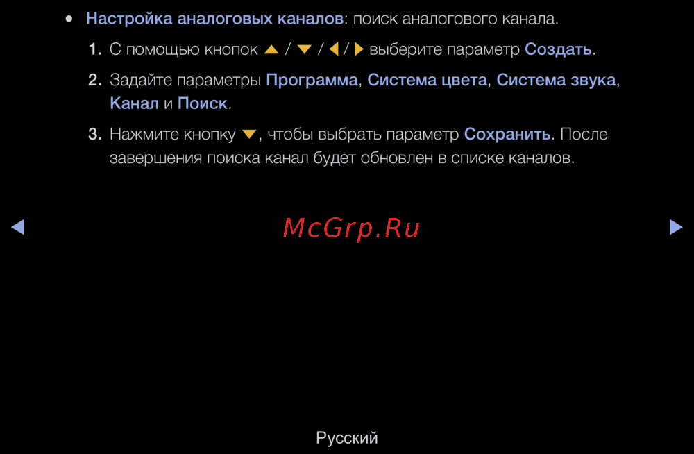 - Доступно если в качестве источника входного сигнала параметр вход установлено значение тв русский p.88