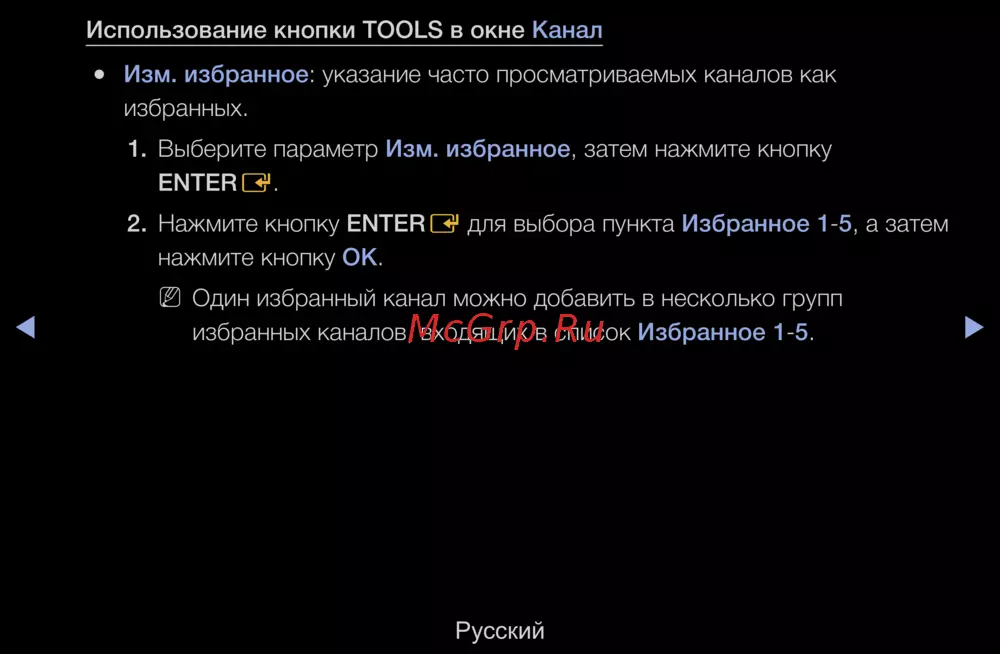 избранных каналов, входящих в список Избранное 1-5.
