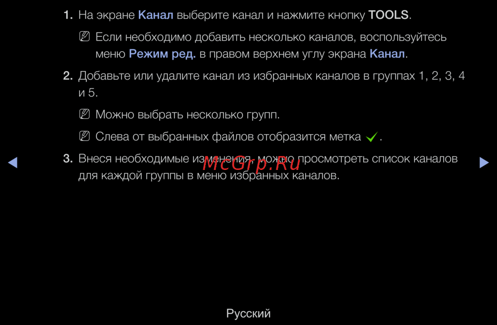2. Добавьте или удалите канал из избранных каналов в группах 1, 2, 3, 4
