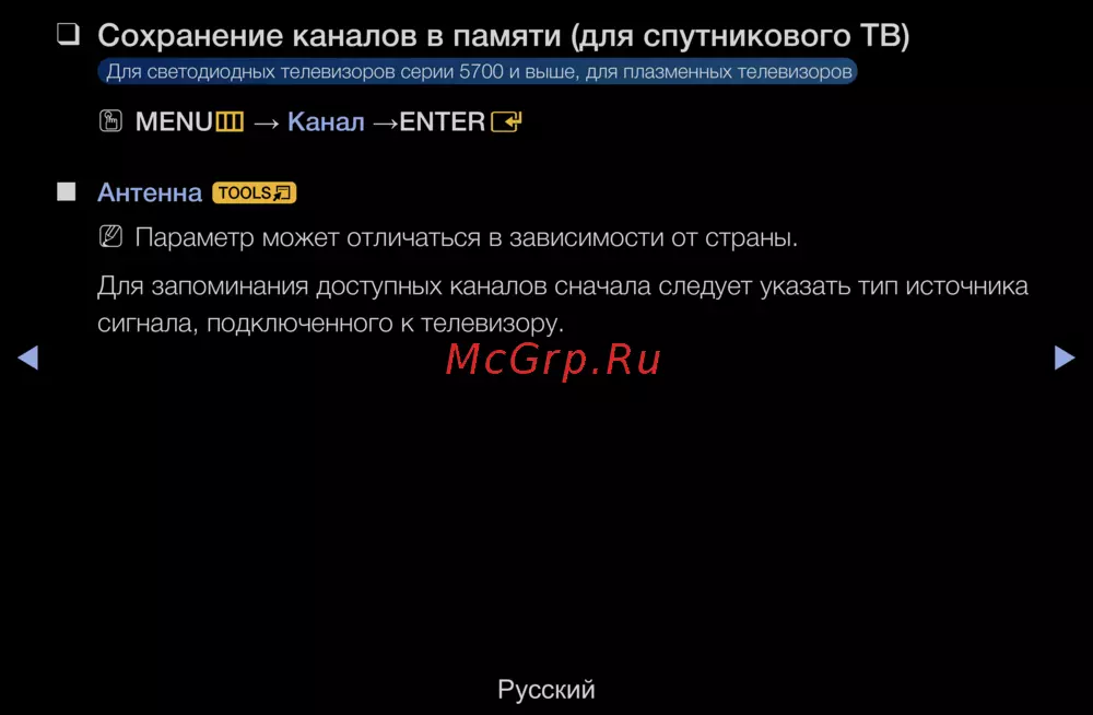 - Доступно если в качестве источника входного сигнала параметр вход установлено значение тв русский p.88
