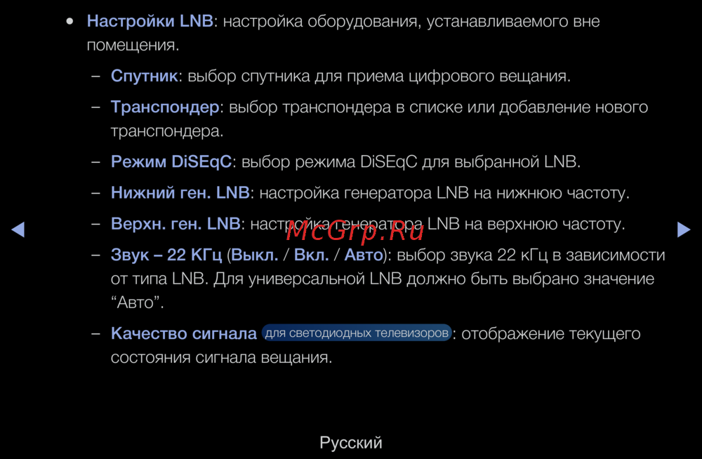 - Доступно если в качестве источника входного сигнала параметр вход установлено значение тв русский p.88
