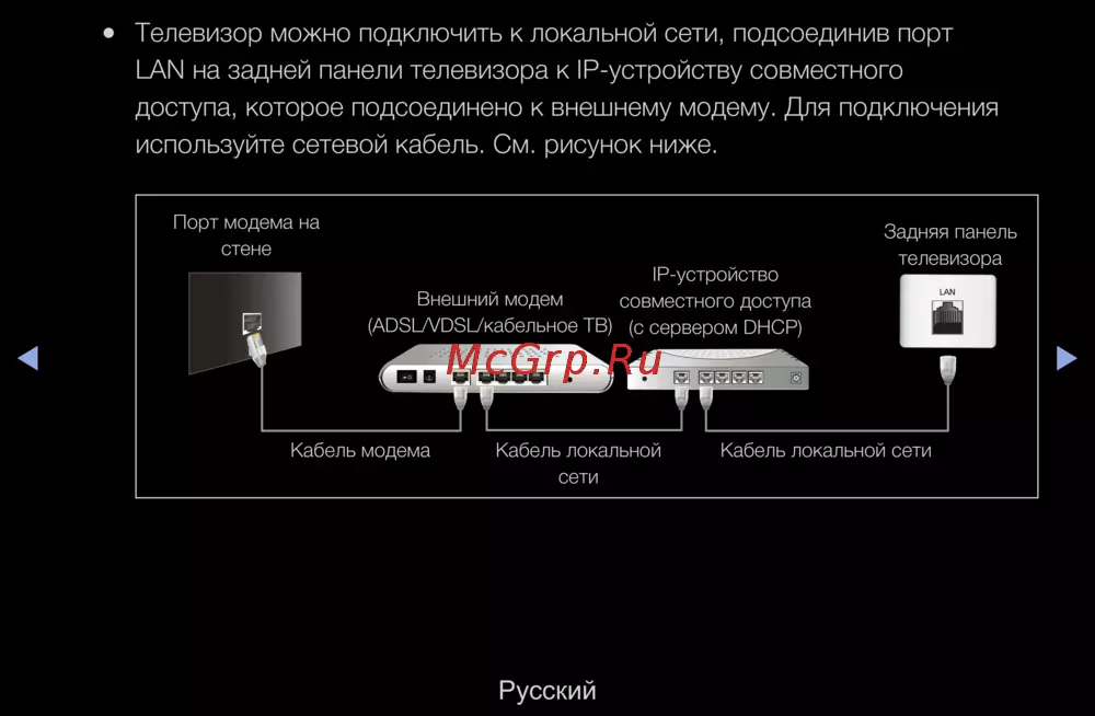 - Существует три способа подключения телевизора к локальной сети с помощью кабеля p.89