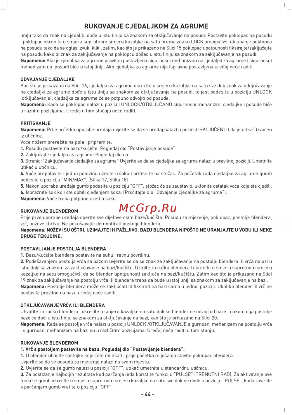 mehanizam na posudi bi´ce u istoj liniji. Ako cjedaljka za agrume nije ispravno postavljena ured¯aj ne´ce raditi.