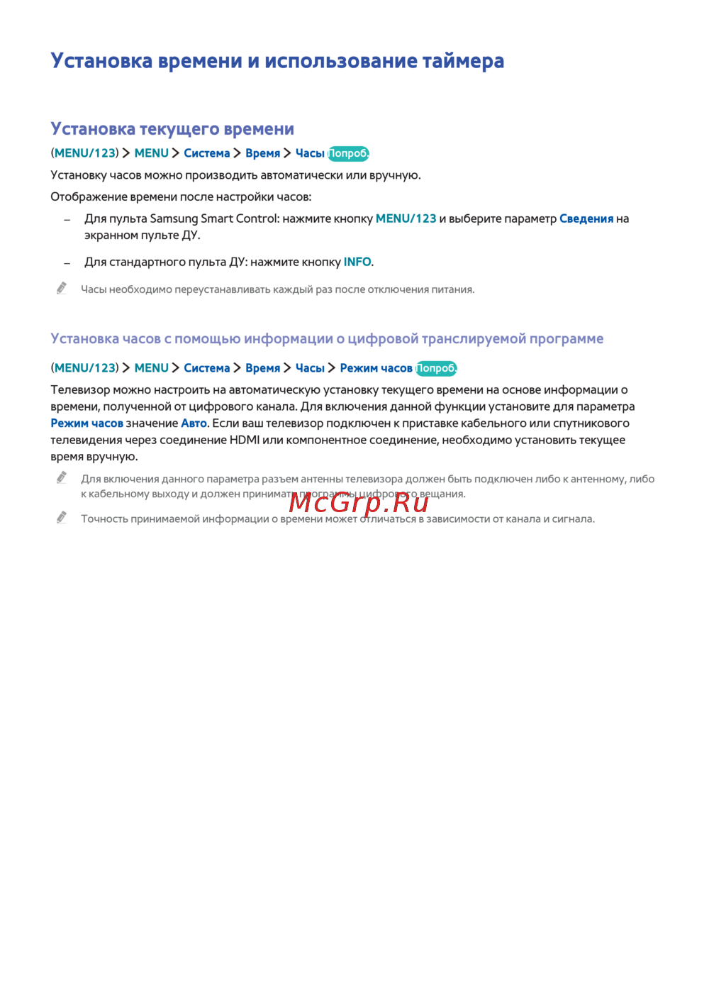Режим часов значение Авто. Если ваш телевизор подключен к приставке кабельного или спутникового