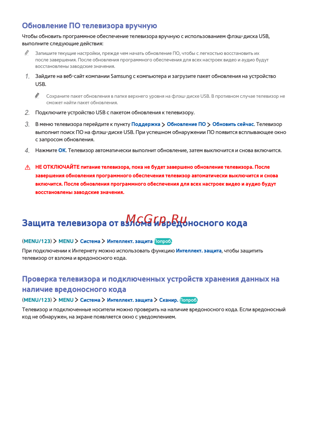 Чтобы обновить программное обеспечение телевизора вручную с использованием флэш-диска USB,