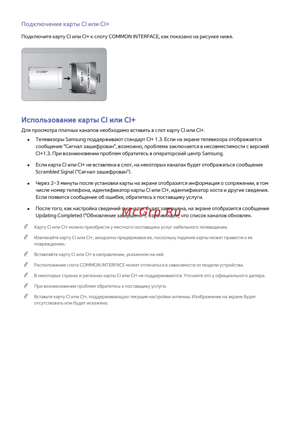 CI+1.3. При возникновении проблем обратитесь в операторский центр Samsung.