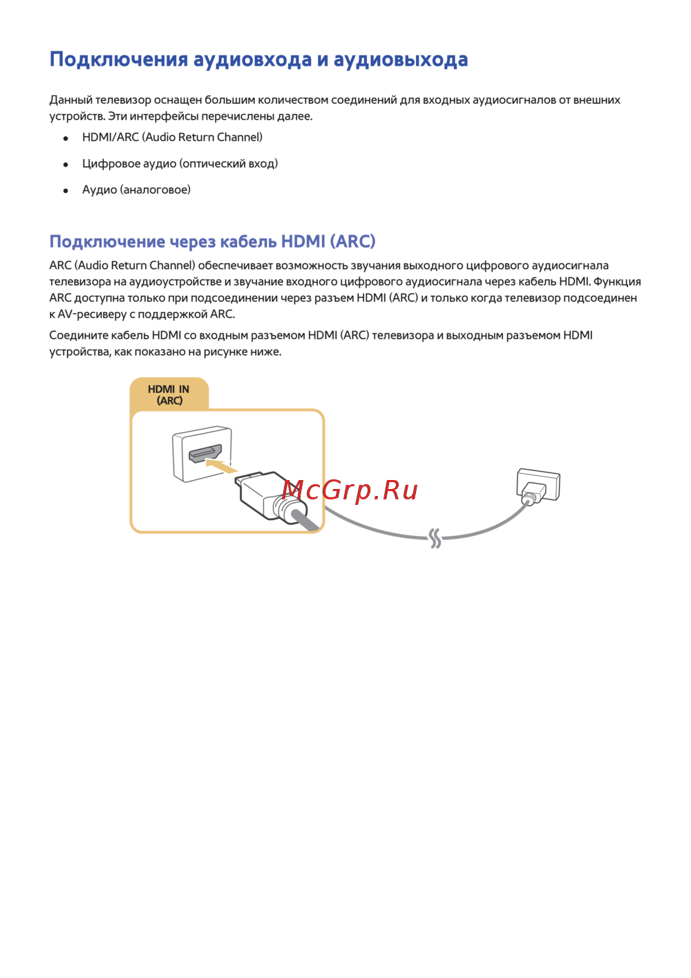 ARC (Audio Return Channel) обеспечивает возможность звучания выходного цифрового аудиосигнала