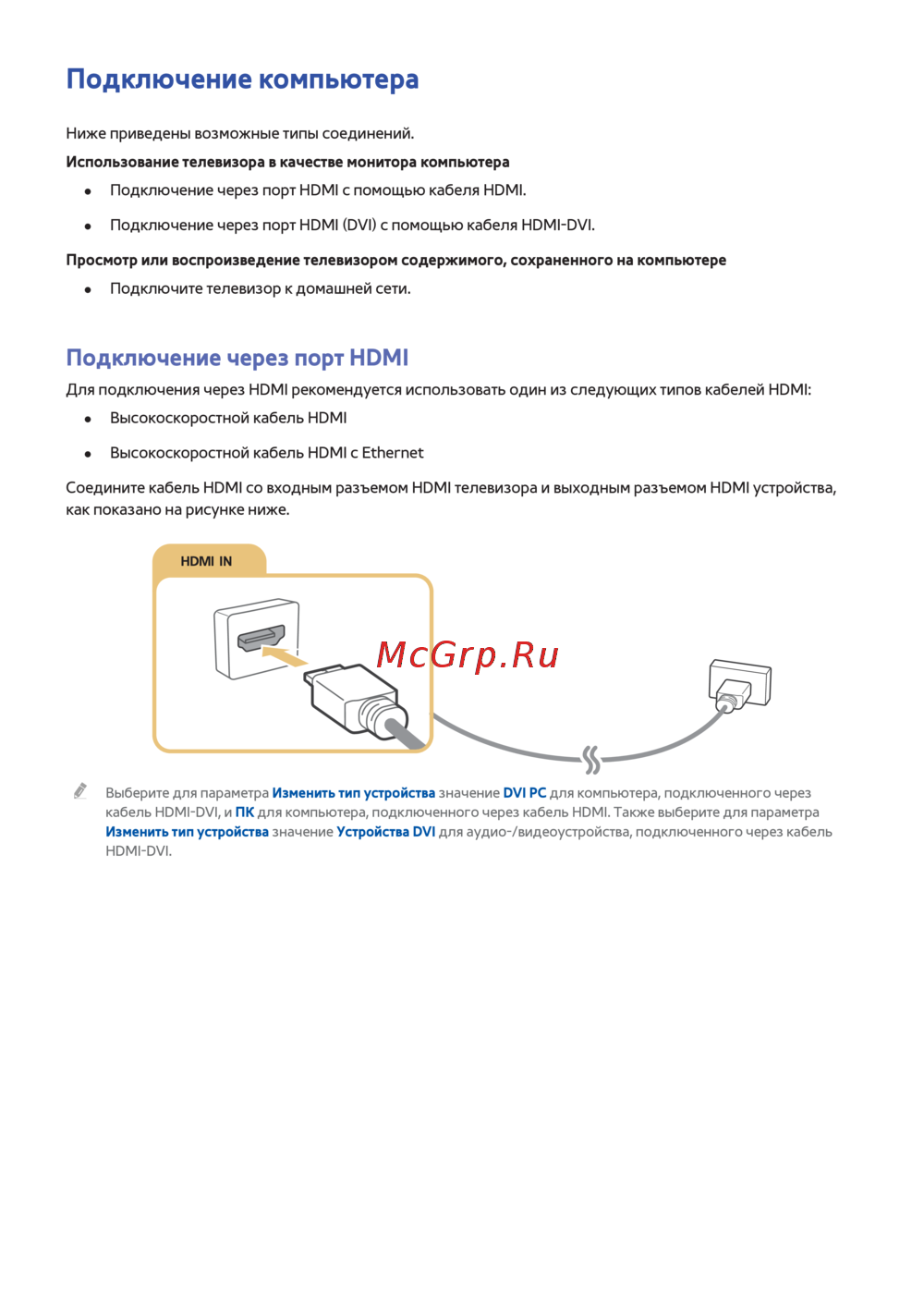 кабель HDMI-DVI, и ПК для компьютера, подключенного через кабель HDMI. Также выберите для параметра