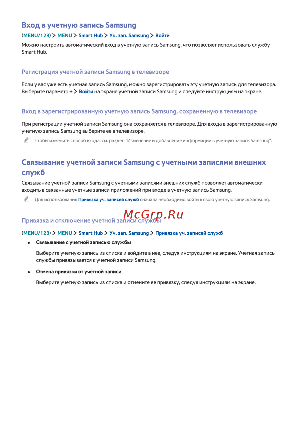 (MENU/123) MENU Smart Hub Уч. зап. Samsung Войти