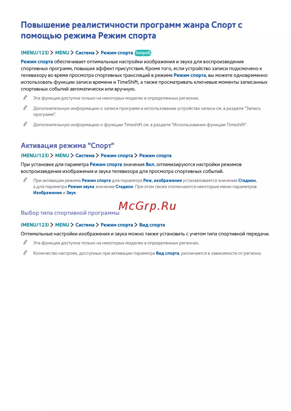 Режим спорта обеспечивает оптимальные настройки изображения и звука для воспроизведения