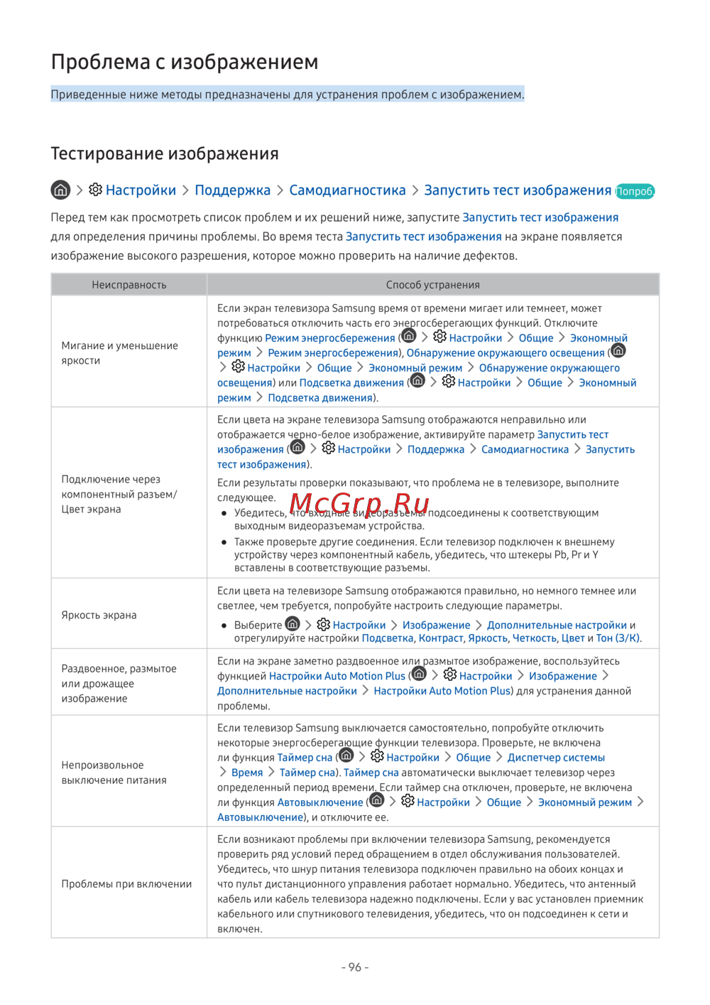 ![Samsung UE49M6503AUXRU [102/155] Перед тем как просмотреть список проблем и их решений ниже запустите запустить тест изображения](/views2/1274167/page102/bg66.png)