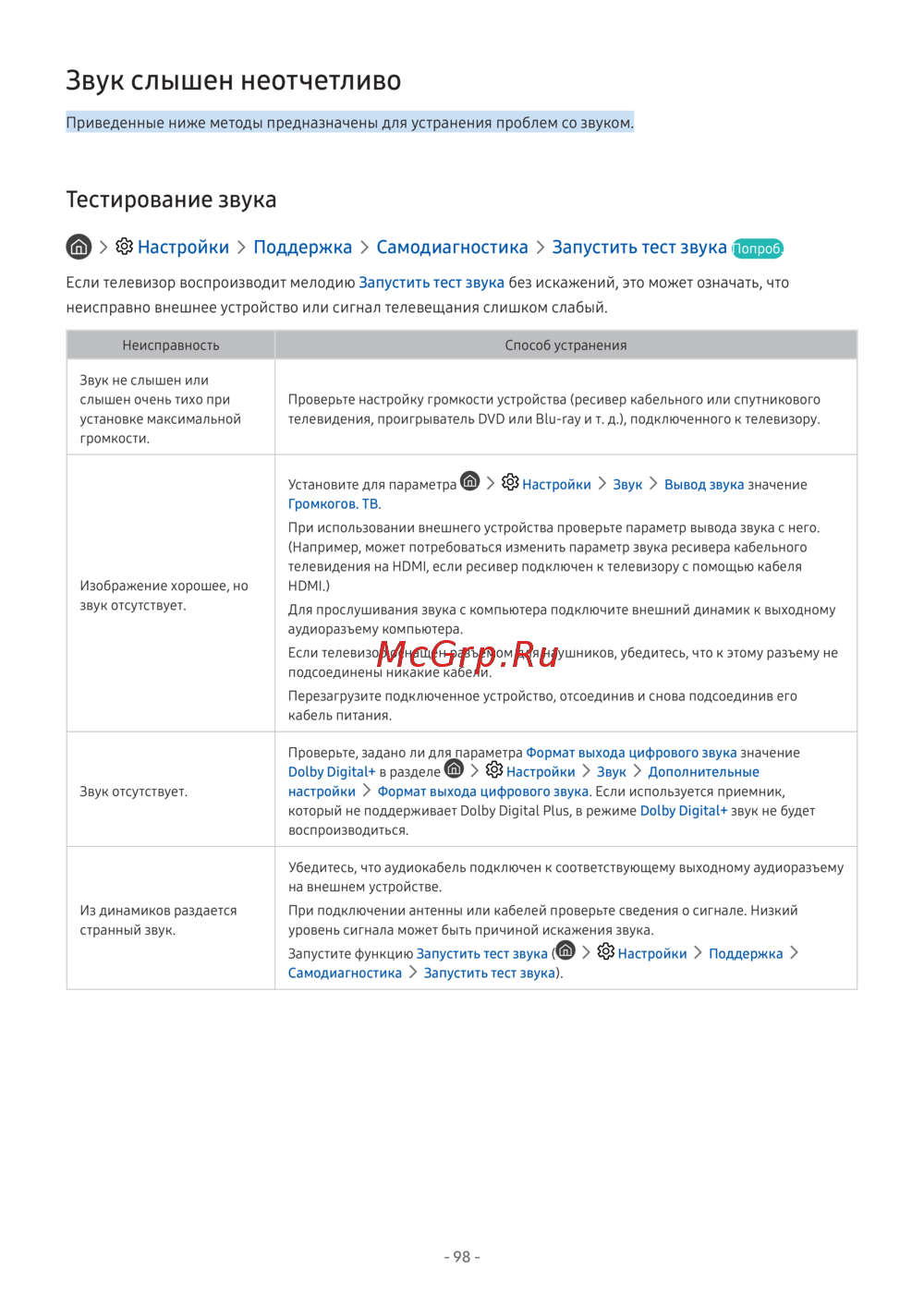 Samsung Series 5 UE32M5500AU — методы устранения проблем со звуком на телевизоре [104/155]