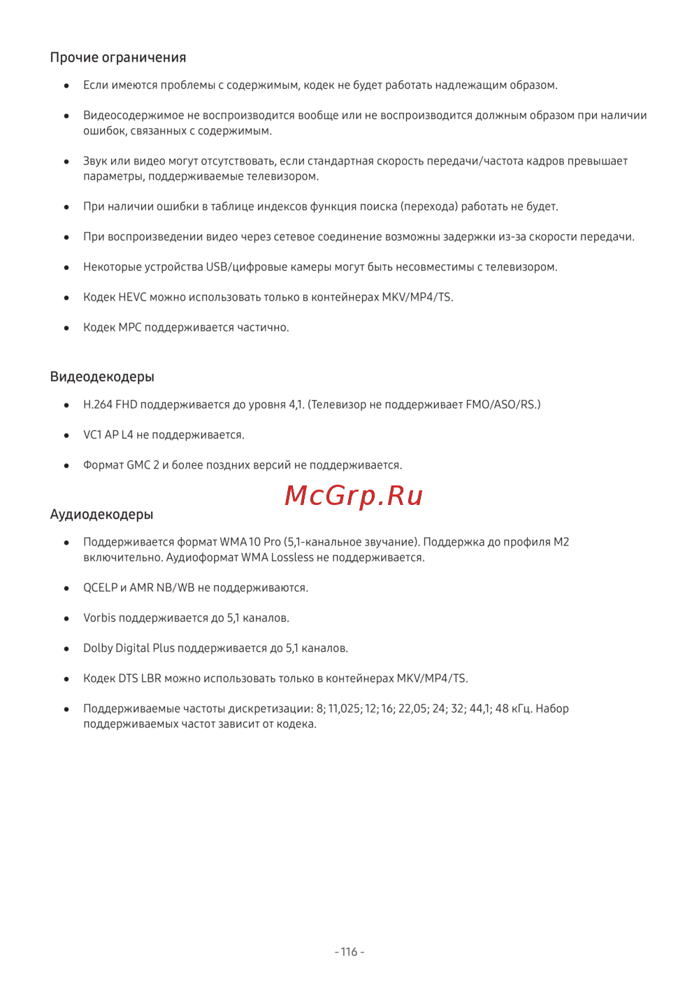 ![Samsung UE49M6503AUXRU [122/155] Поддерживаемые частоты дискретизации 8 11 025 12 16 22 05 24 32 44 1 48 кгц набор поддерживаемых частот зависит от кодека](/views2/1274167/page122/bg7a.png)