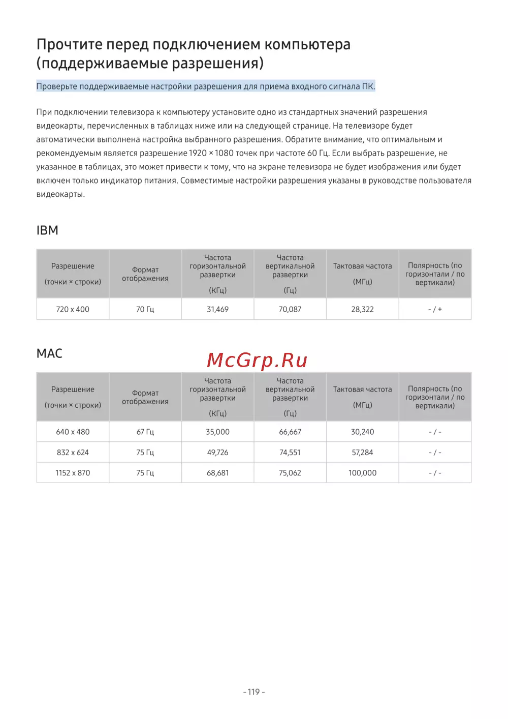 Проверьте поддерживаемые настройки разрешения для приема входного сигнала ПК.