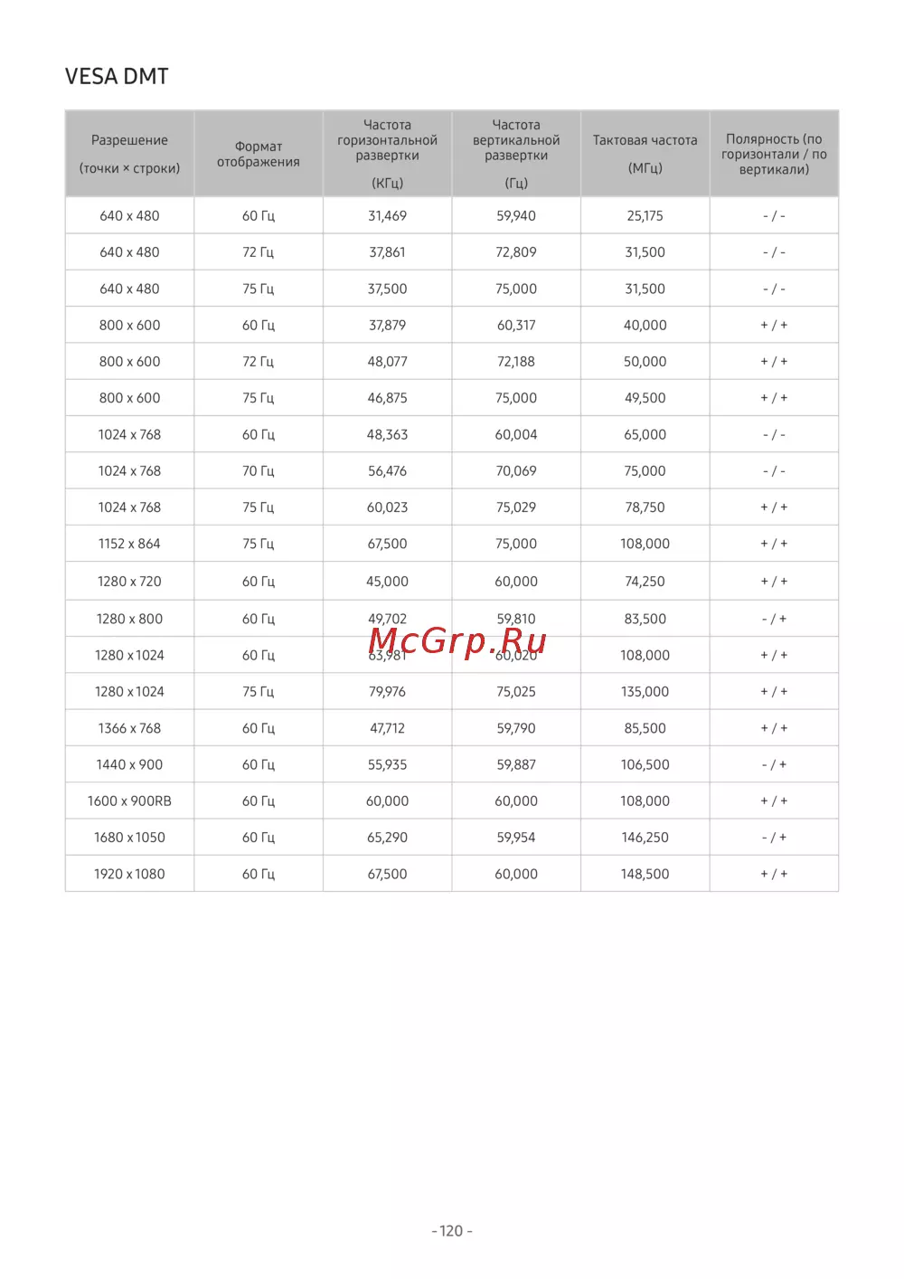 640 x 480 60Гц 31,469 59,940 25,175 - / -