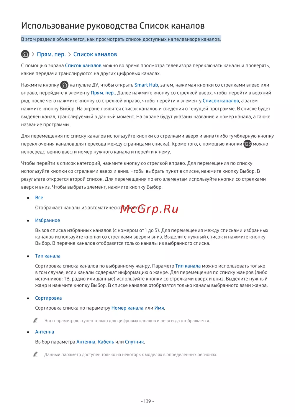 - Выбор и просмотр только тех каналов которые внесены в списки избранного p.147