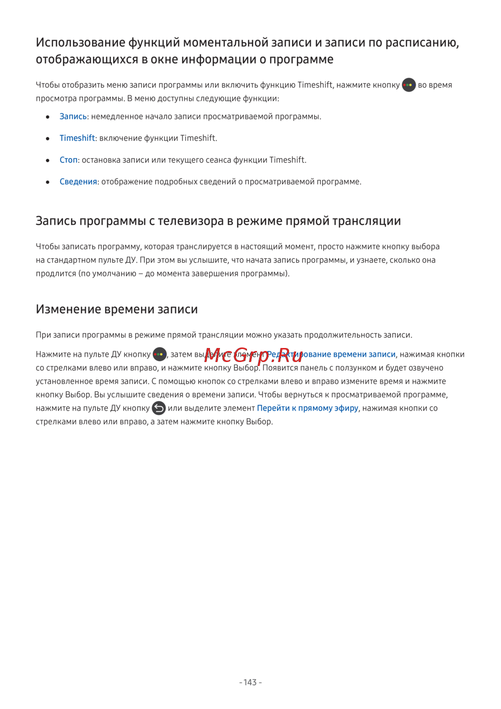 - Запись программы с телевизора в режиме прямой трансляции p.149