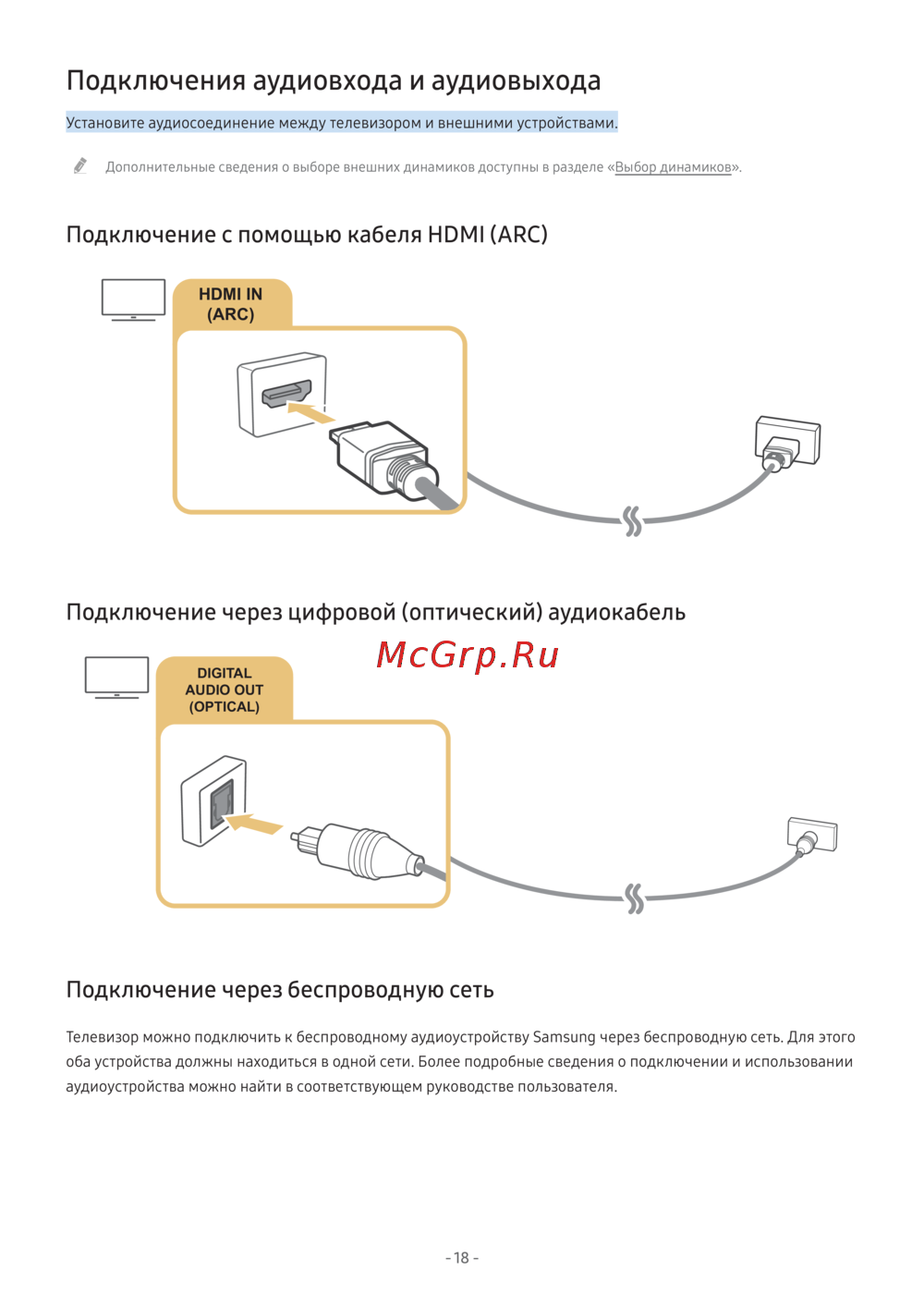 Телевизор можно подключить к беспроводному аудиоустройству Samsung через беспроводную сеть. Для этого