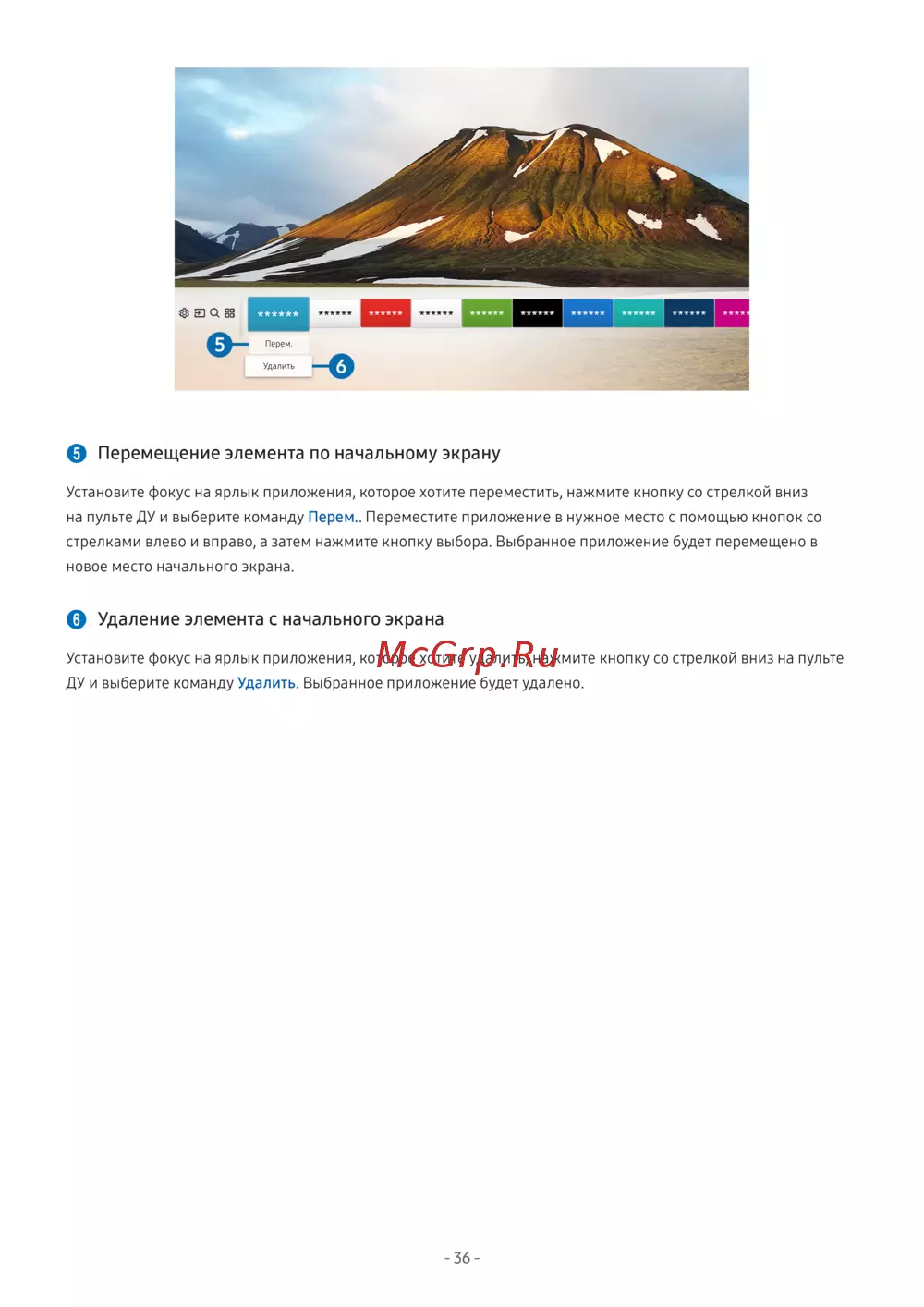 Samsung Series 5 UE32M5500AU — как перемещать и удалять приложения на начальном экране [42/155]