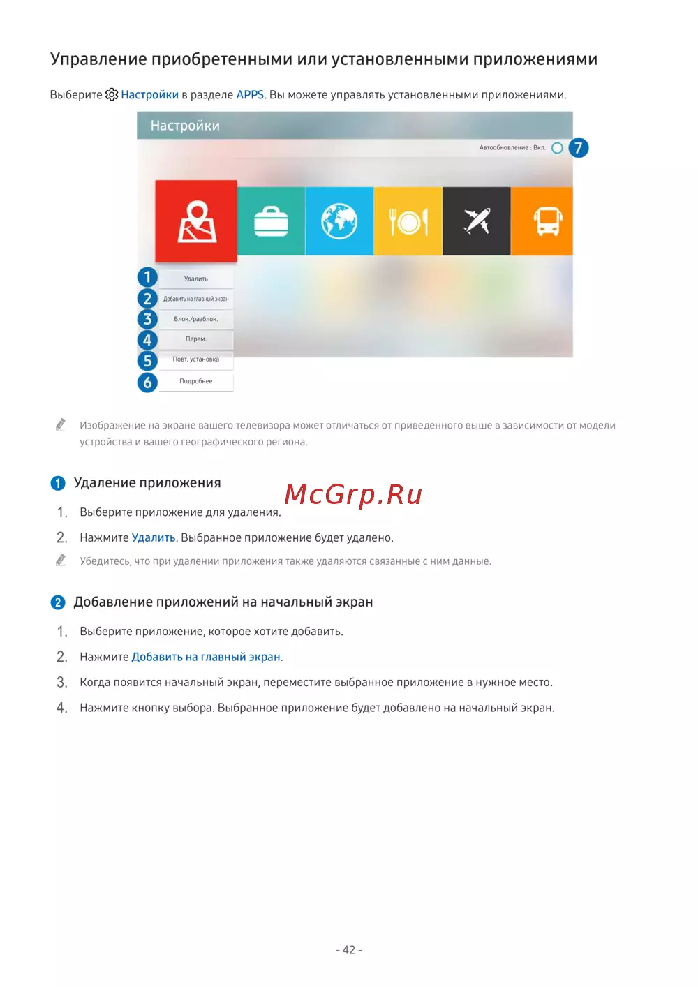 Узнайте, как управлять установленными приложениями на вашем устройстве. Удаляйте, добавляйте на главный экран и настраивайте автообновление с легкостью.