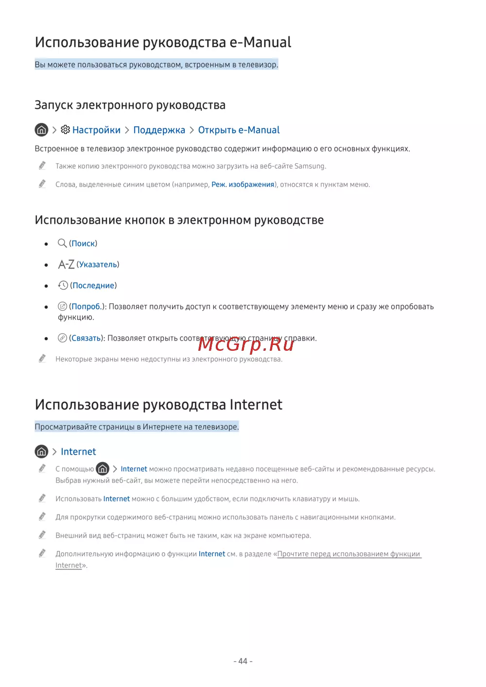 " Также копию электронного руководства можно загрузить на веб-сайте Samsung.