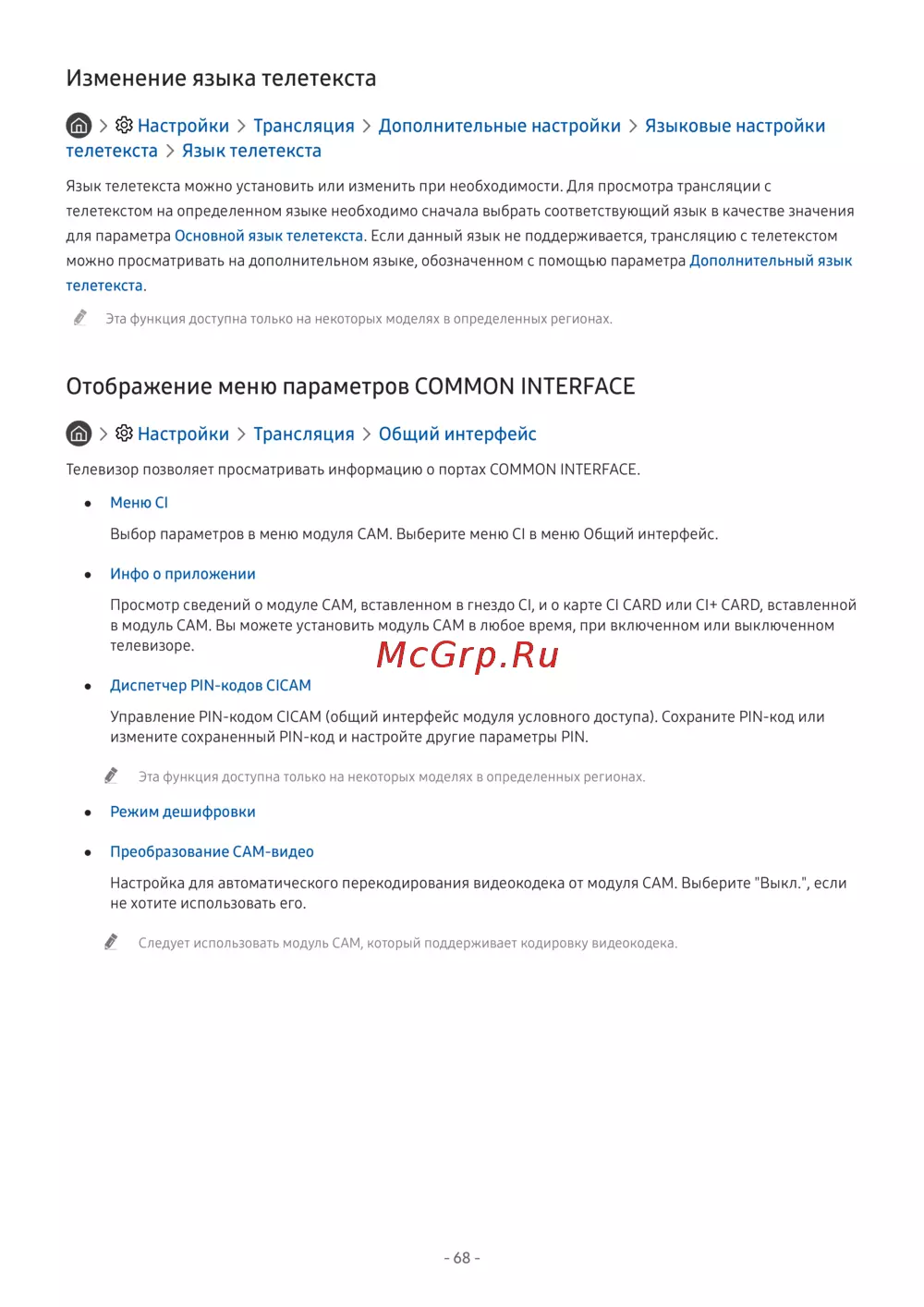 Управление PIN-кодом CICAM (общий интерфейс модуля условного доступа). Сохраните PIN-код или