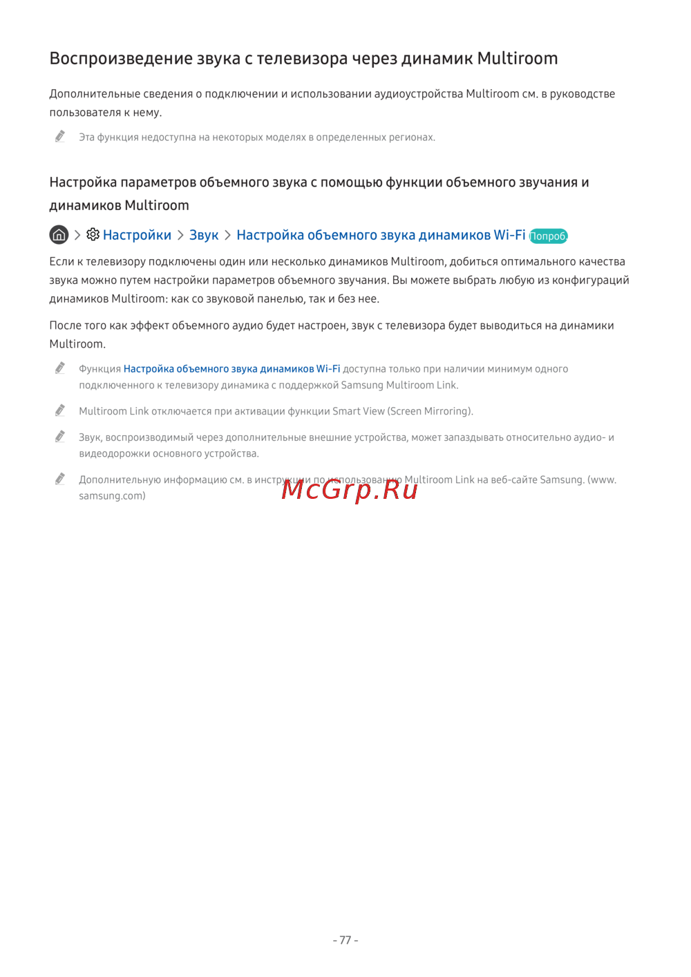 " Дополнительную информацию см. в инструкции по использованию Multiroom Link на веб-сайте Samsung. (www.