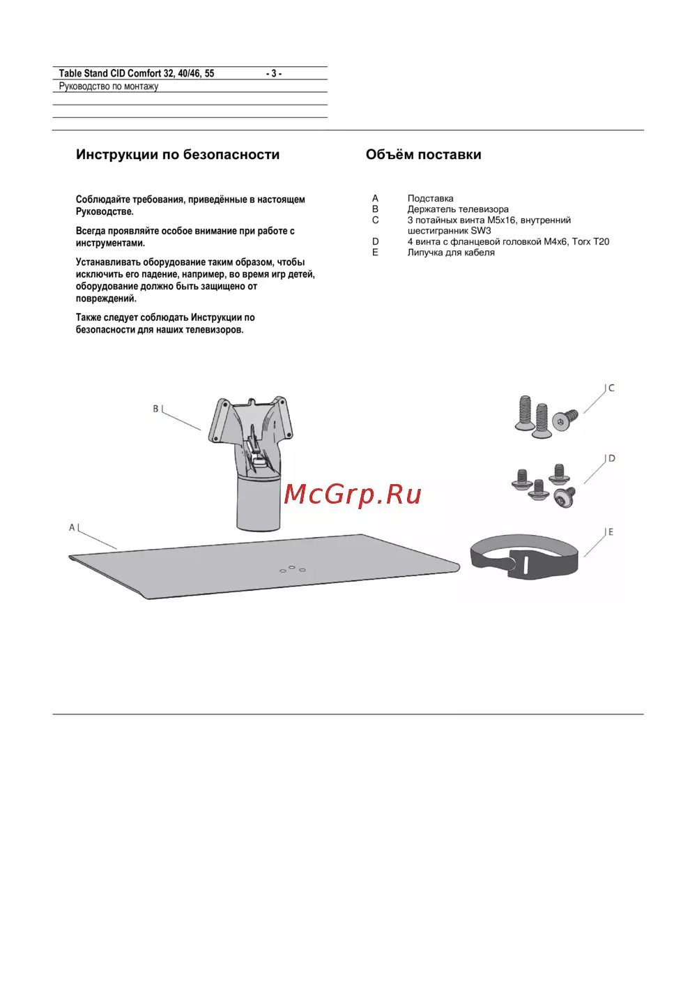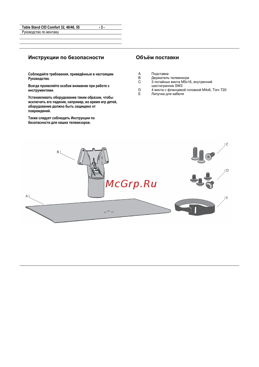 Loewe Equipment Board Floor Stand CID Chrome Silver — руководство по монтажу подставки для телевизора и безопасности [3/7]