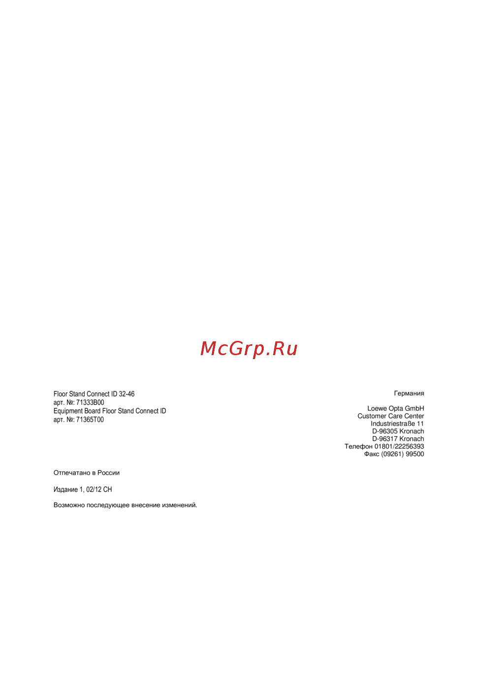 Loewe Adapter Floor Stand U CID 32-55 71356T00Инструкция по эксплуатации -