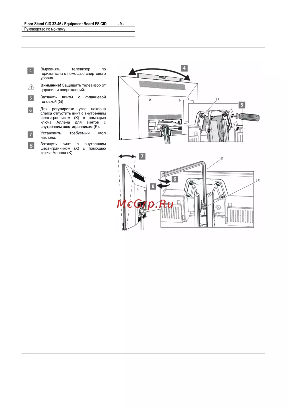 Loewe Floor Stand CID Silver — руководство по монтажу настенного крепления для телевизора [9/12]