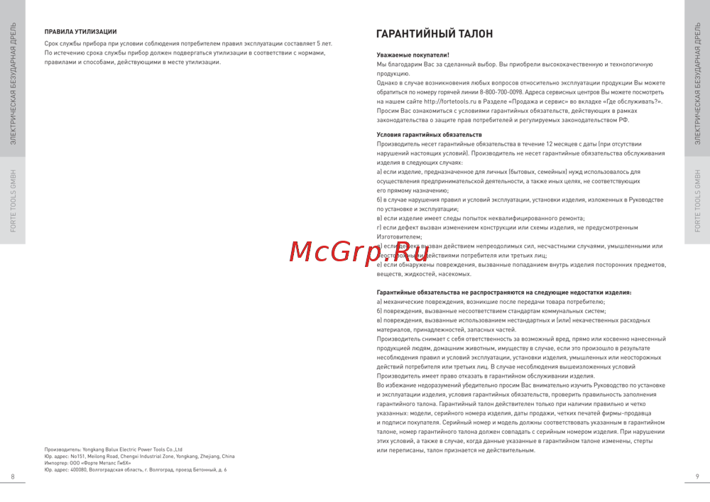- Электрическая безударная дрель forte tools gmbh p.8