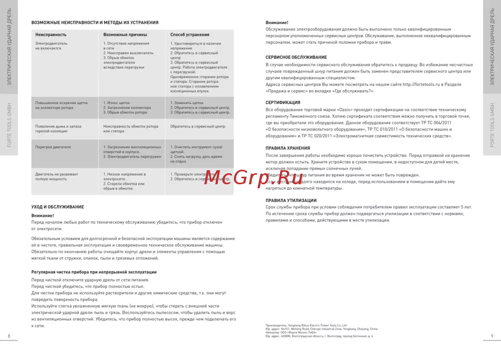 Адреса сервисных центров Вы можете посмотреть на нашем сайте http://fortetools.ru в Разделе