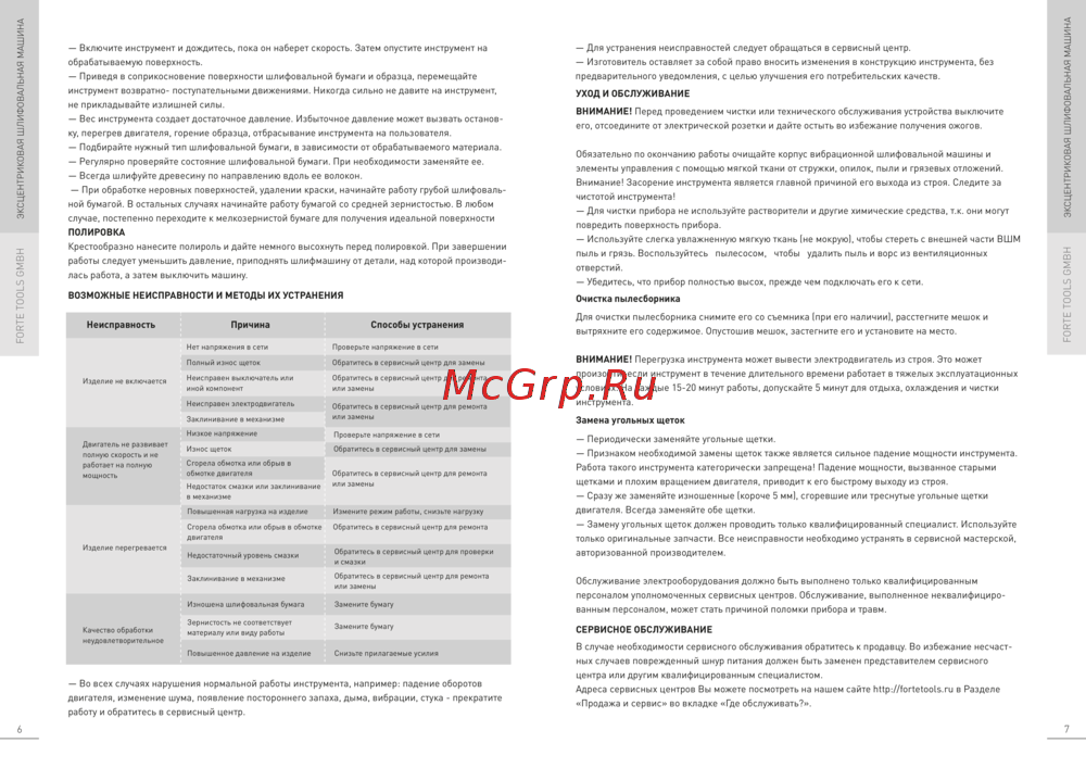 Адреса сервисных центров Вы можете посмотреть на нашем сайте http://fortetools.ru в Разделе