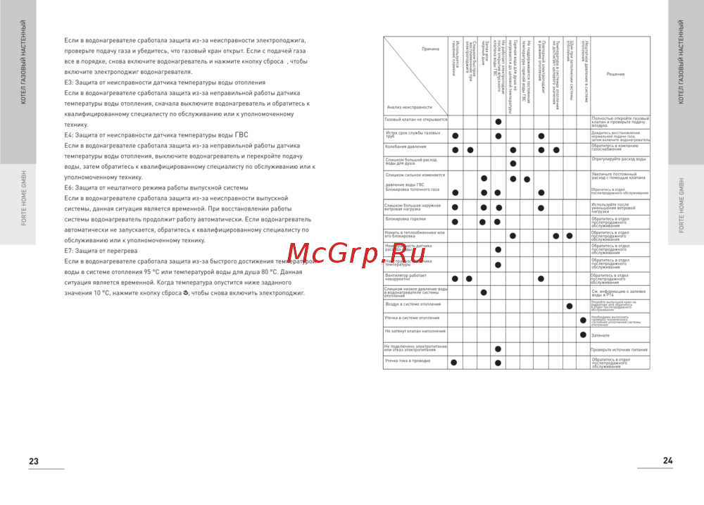 - E3 защита от неисправности датчика температуры воды отопления p.14