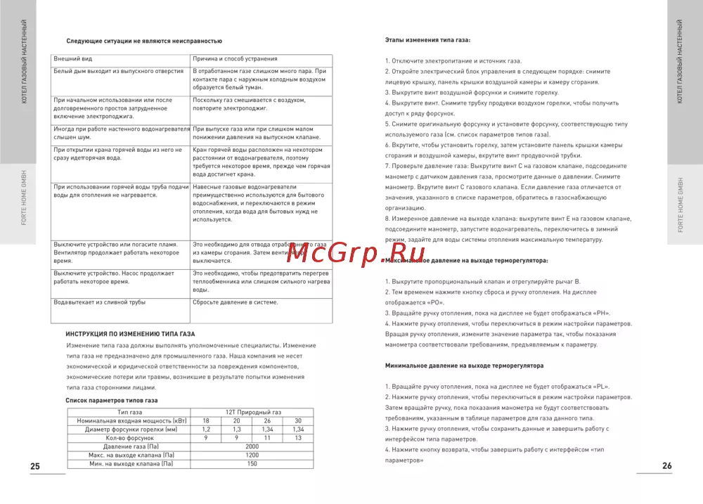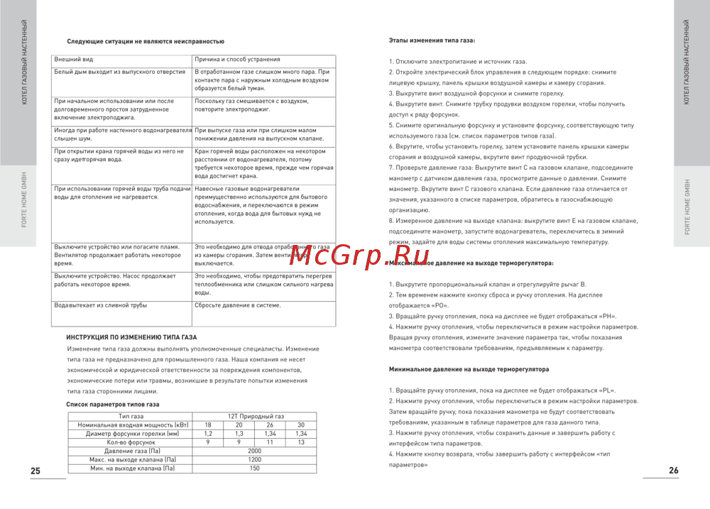 - Изменение типа газа должны выполнять уполномоченные специалисты изменение p.15