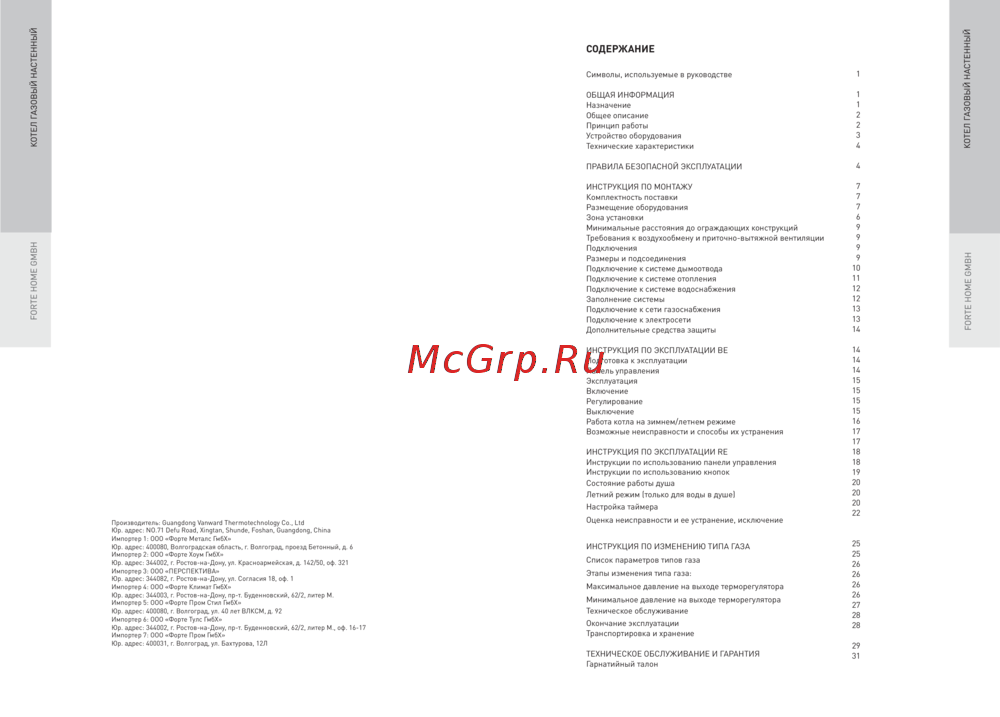 - Типа газа не предназначено для промышленного газа наша компания не несет p.15