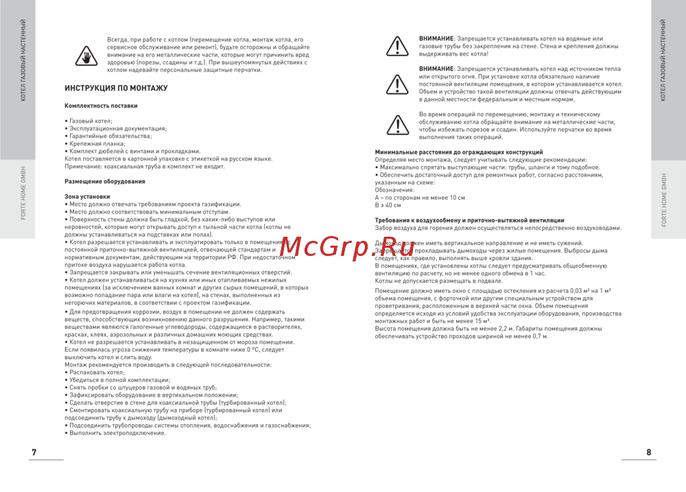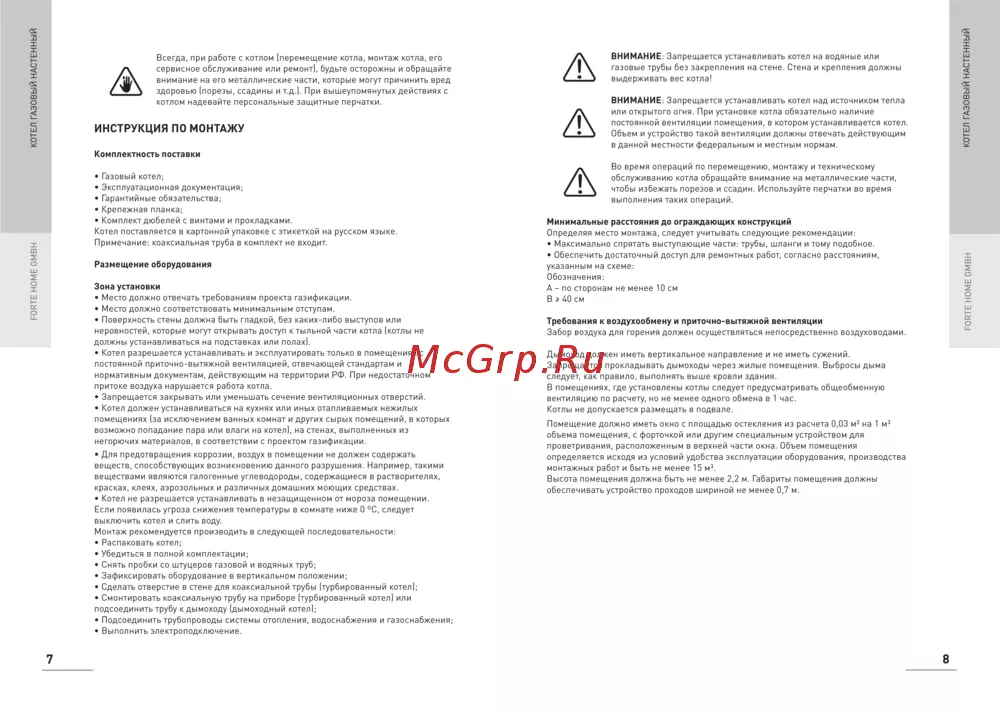 - Бережно храните данное руководство вместе со всеми документами оформленными при монтаже и или сервисном обслуживании котла в процессе эксплуатации могут возникнуть вопросы ответы на которые вы найдете в данном руководстве чистка внешних панелей обшивки должна проводиться только водой с мылом не допускается использовать для чистки окрашенных и пластмассовых частей растворители для краски и другие едкие вещества монтаж котла должен осуществляться квалифицированным техническим специалистом в обязательном соответствии с действующими федеральными местными законами и нормами и инструкциями данного руководства составленными производителем опасность со угарный газ газ без цвета и запаха способный причинить серьезный вред здоровью человека в помещении воздухообмен должен соответствовать требованиям действующих снип в противном случае несоблюдение правил вентиляции такого помещения может привести к тяжелым последствиям для здоровья и даже к летальному исходу людей находящихся в этом помещении во p.4