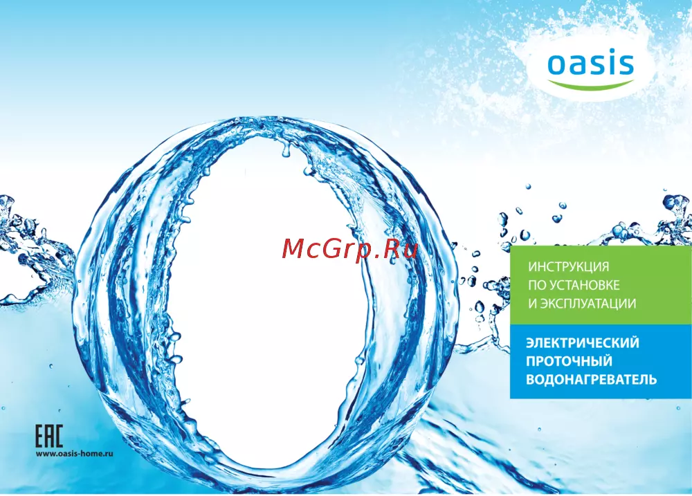 oasis ИНСТРУКЦИЯ ПО УСТАНОВКЕ И ЭКСПЛУАТАЦИИ ЭЛЕКТРИЧЕСКИЙ ПРОТОЧНЫЙ ВОДОНАГРЕВАТЕЛЬ ЕНЕ www oasis home ru